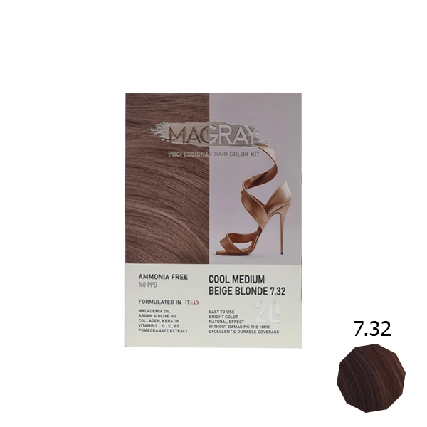 کیت رنگ مو بدون آمونیاک ماگرای شماره 7.32 بلوند بژ متوسط سرد