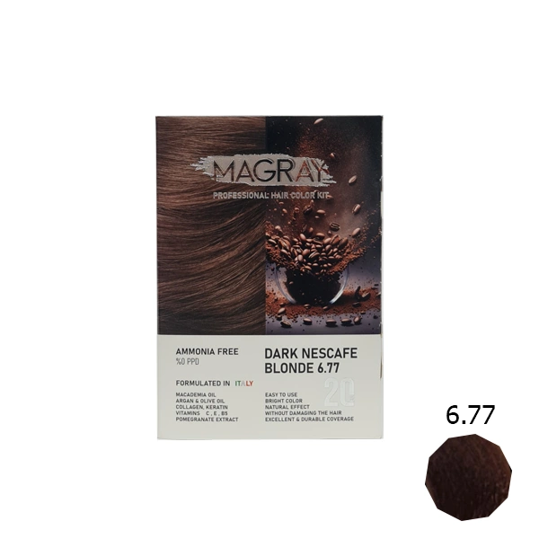 کیت رنگ مو بدون آمونیاک ماگرای شماره 6.77 بلوند نسکافه ای تیره