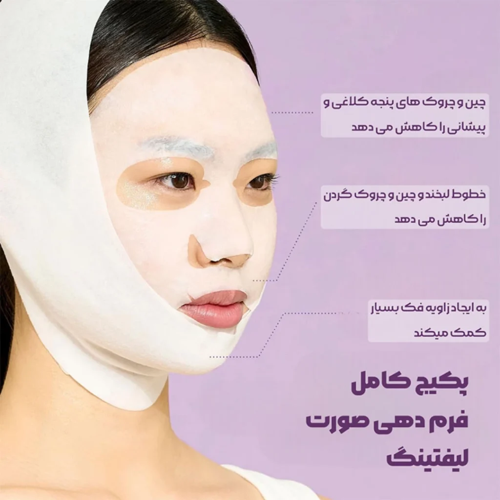یکی از نقاط قوت این محصول، طراحی ساختاری آن است. ماسک در دو بخش بالایی و پایینی صورت قرار میگیرد و با کمک نوار لیفت قابل تنظیم، اثر فیزیکی لیفت را تقویت میکند. این ساختار به شکل مستقیم روی نواحی زیر اثر میگذارد:
